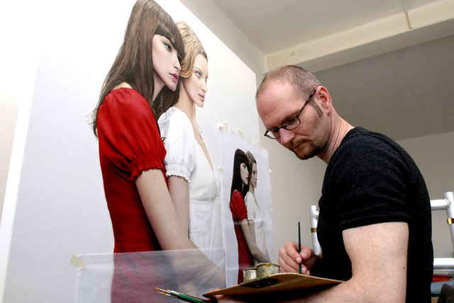 这就是德国艺术家菲利普.韦伯在工作室的创作场景,他正在一丝不苟地刻画两位美女!德国人各行各业一丝不苟精益求精的工匠精神,历来都是有口皆碑的,在艺术创作方面也同样如此!