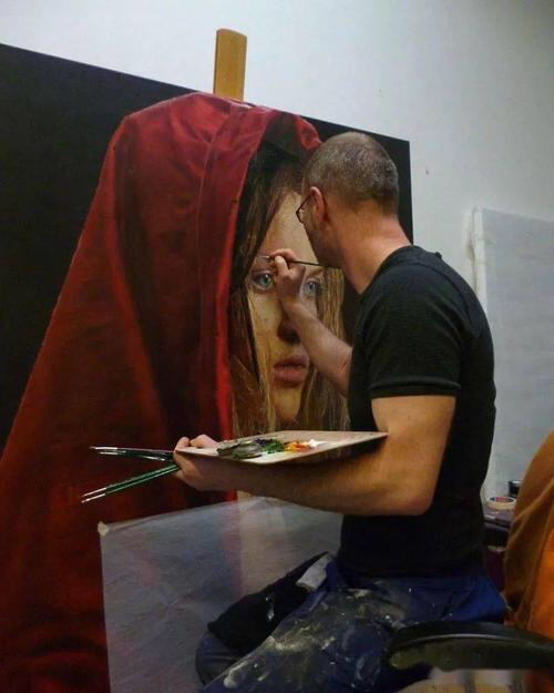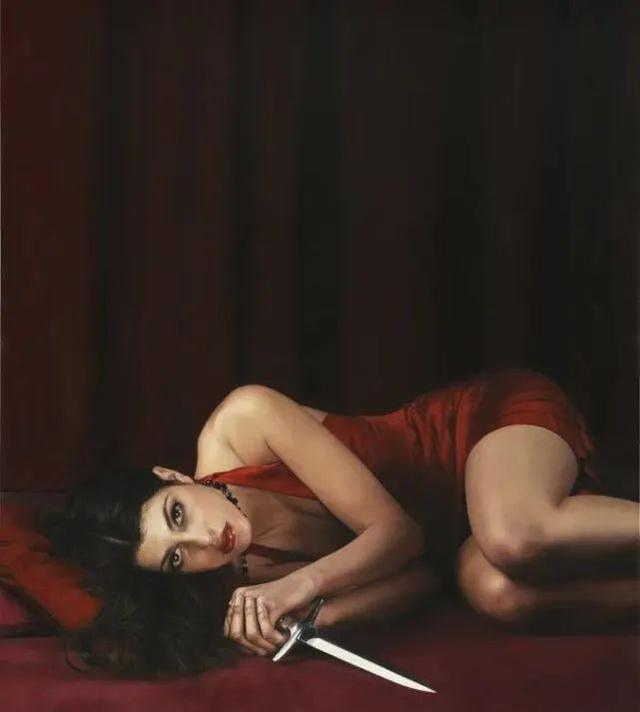 菲利普.韦伯的创作灵感大多数来自于人物的日常生活故事或者电影某个镜头特写、旅行时的所见所闻等!欣赏这幅拿着一把刀的画作,脑海里蓦然就会出现某部恐怖片!