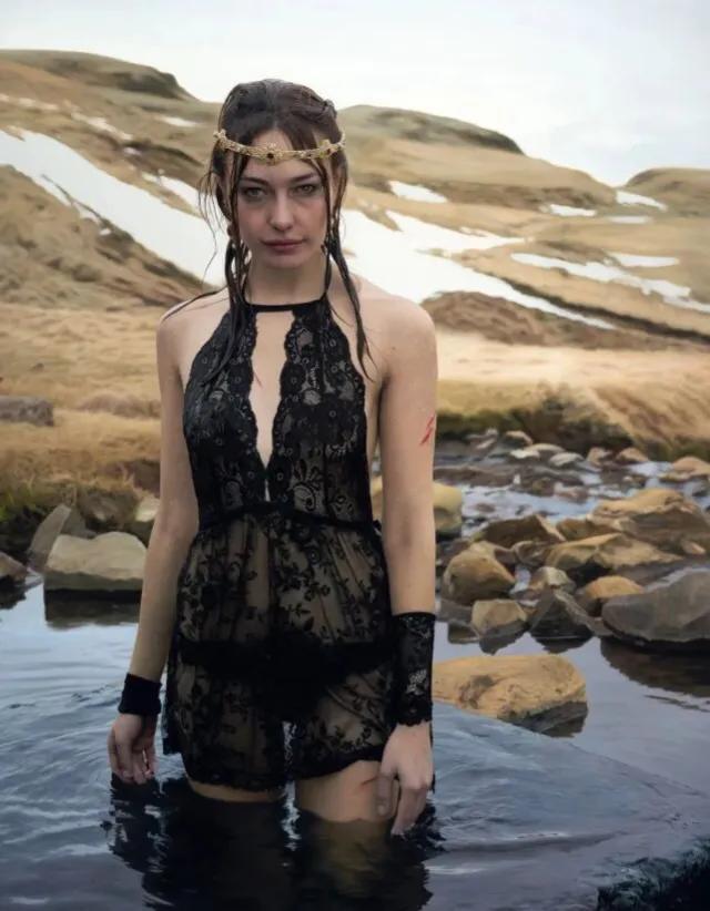 有没有想起绿色的蜥蜴,或者是青蛙,或者其它张牙舞爪的其它动物呢,这回头一瞥、惊惧的眼神,感觉是女性突然受了惊吓和伤害!