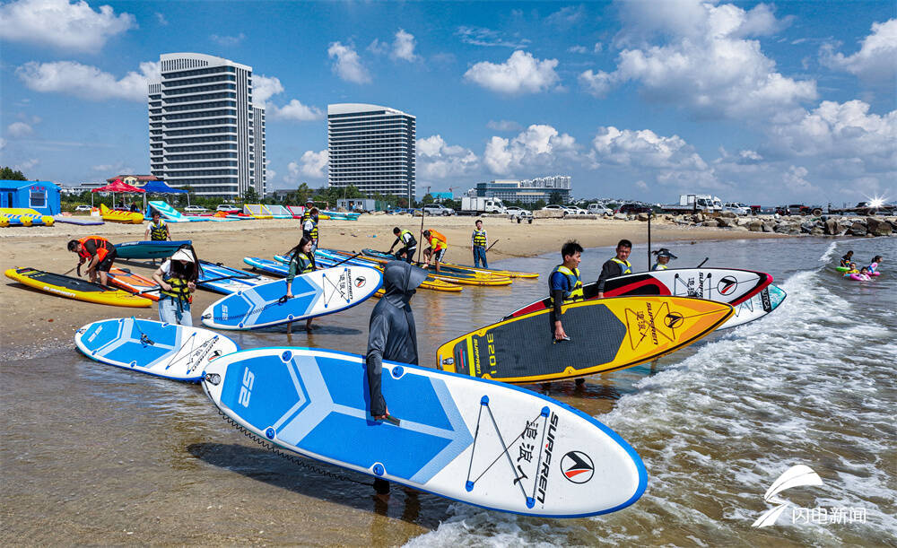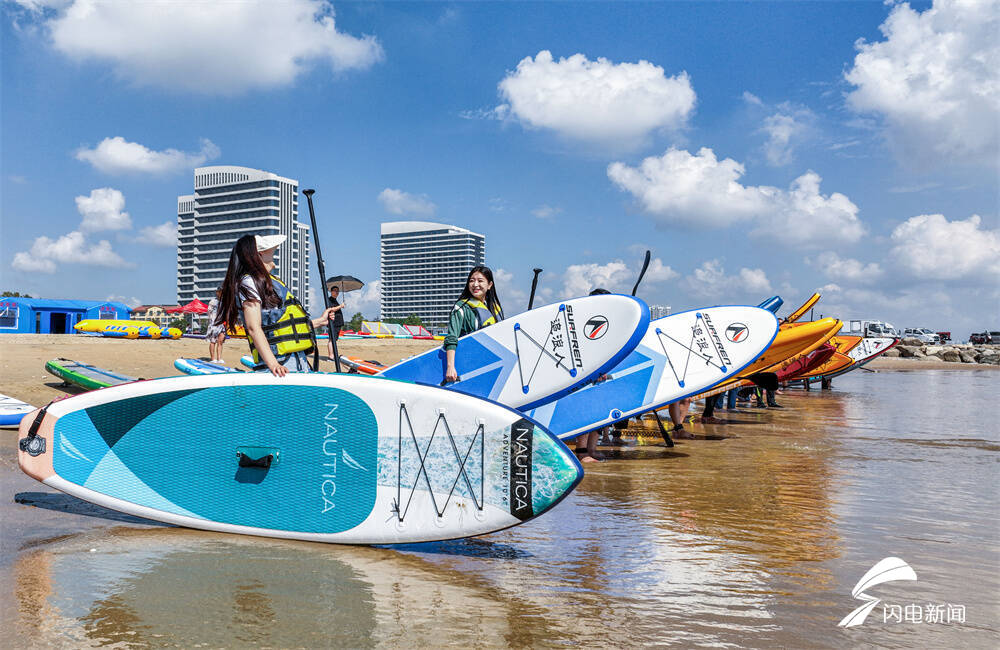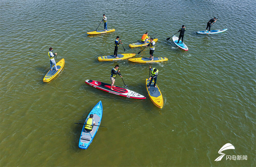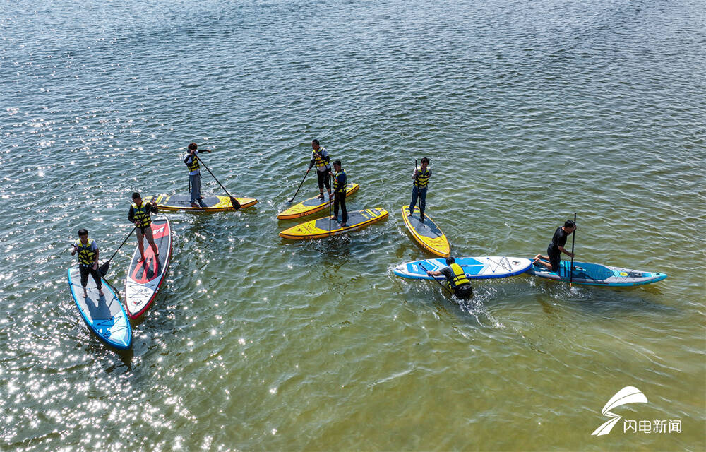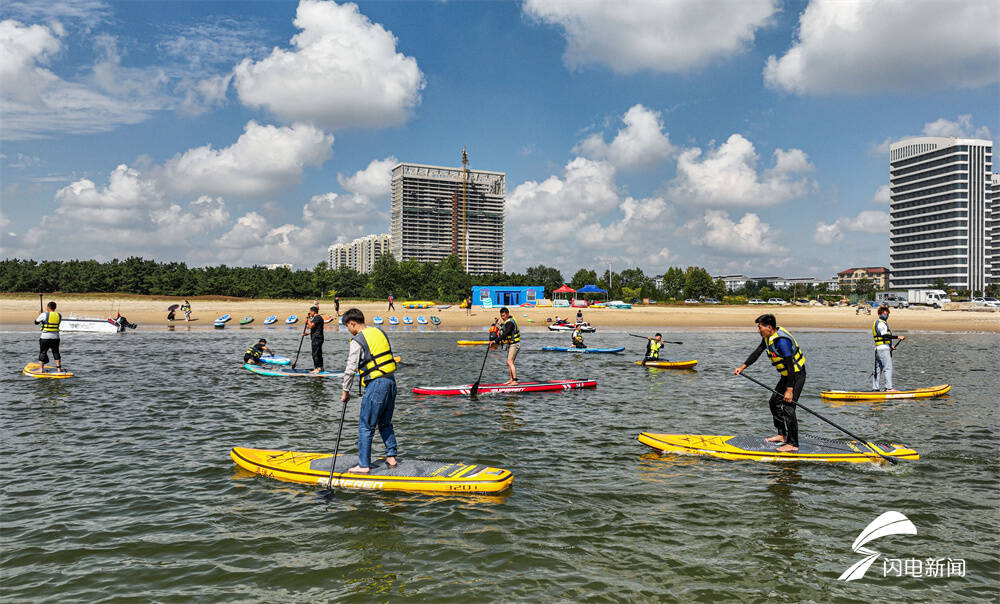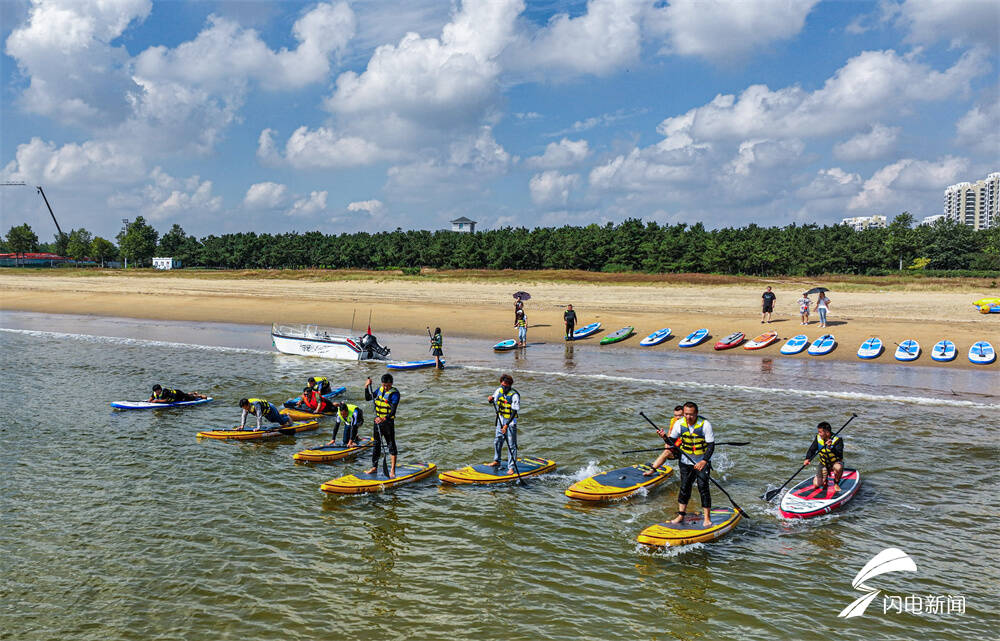 齐鲁网·闪电新闻9月12日讯 中秋假期,在山东省荣成市滨海公园海域,市民们划动桨板在海面上踏浪逐波,尽享假日休闲好时光。
