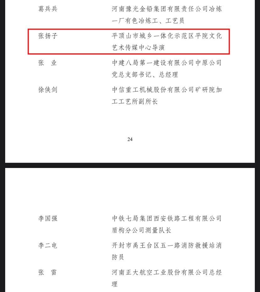 近日,第21届全国青年岗位能手(标兵)入围名单公示,市城乡一体化示范区平院文化艺术传媒中心导演张扬子入选“全国青年岗位能手”。