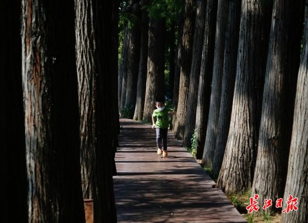 小朋友在东湖听涛景区杉林步道中快乐玩耍。记者何晓刚 摄