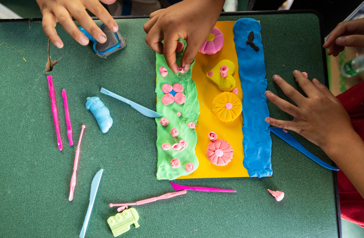 9月10日,在泸定二中临时安置点的“帐篷课堂”里,孩子们用橡皮泥制作创意“月饼”。新华社记者 沈伯韩 摄