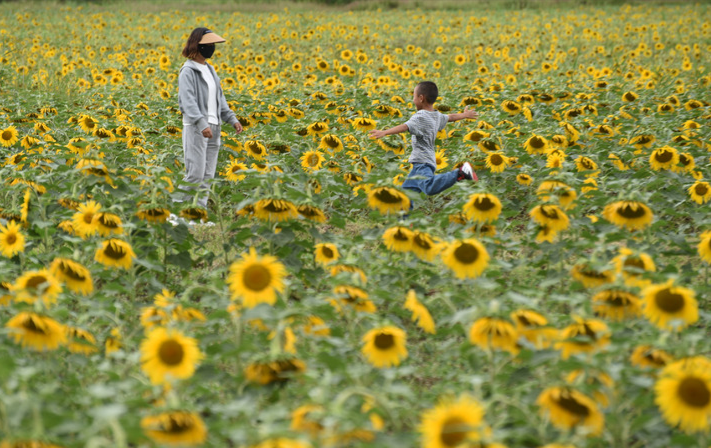 9月11日,游人在云南省丽江市古城区开南街道的向日葵花海里游玩。新华社发(赵庆祖摄)