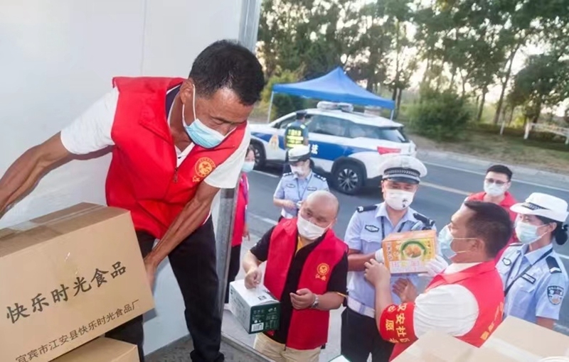 广大防疫一线人员坚守岗位,用实际行动为市民群众健康保驾护航。“您们不辞劳苦、坚守防疫一线,守护市民群众健康,辛苦了!”承载社会各界对抗疫一线的关怀,江安县竹海老艺人食品公司、江安县快乐时光食品厂、江安县圆通速递、江安县中明超市等爱心企业和爱心人士,奉献爱心,捐赠月饼、蛋糕、桃酥、水果、牛奶、矿泉水、方便面等物资,送到防疫一线。