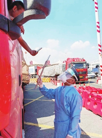 在日兰高速日照收费站和沈海高速日照北收费站运输服务点,车流量比平时增加一倍,驻站交通运输服务人员对每一辆车仔细查验健康码和行程码,耐心询问过往行程,做到“逢车必查、逢人必检、不漏一车、人”。他们值班值守、昼夜无歇,快速查验、高效服务,有效保障了人流物流畅通。(记者 房姿辰)