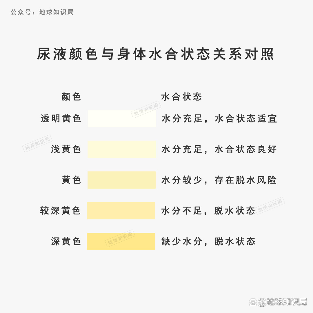 尿量减少。机体长期缺水会导致血流量减少,进而肾灌注不足,导致尿量减少。成年人每日正常尿量大约在1000-2000ml左右,如果少于400ml则被称为“少尿”。长期肾灌注不足会造成肾功能受损等不可逆转的损害。尿色加深。正常尿液中由于含有尿色素而呈现黄色,颜色深浅由相对含量决定。缺水引起尿液减少时,尿色素的产生并不会减少,因此尿液颜色也会变得越来越深。
