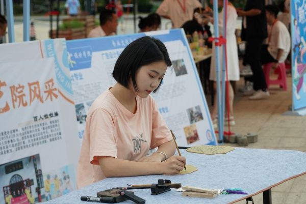 “现场亲手书写的团扇,有温度有寄托,是学长学姐对新生弟弟妹妹们的宠爱,也体现了书法独有的文化魅力。”该院的书法教师段美婷说,这份礼物看似“轻薄”,实则用心良苦。“完美地握笔,是成为艺术匠人的第一步。学生们通过‘见面礼’不仅能体验千百年来文化传承的汉字书写之感,一笔一划构建起来文字意韵、眼读手写时带给的丰富感受,更能让学生们体会这种文化背后所蕴含的价值感。见字如晤,翰墨传情,这些是情怀,更是传承,饱含学校对新生的尊重与心意。”