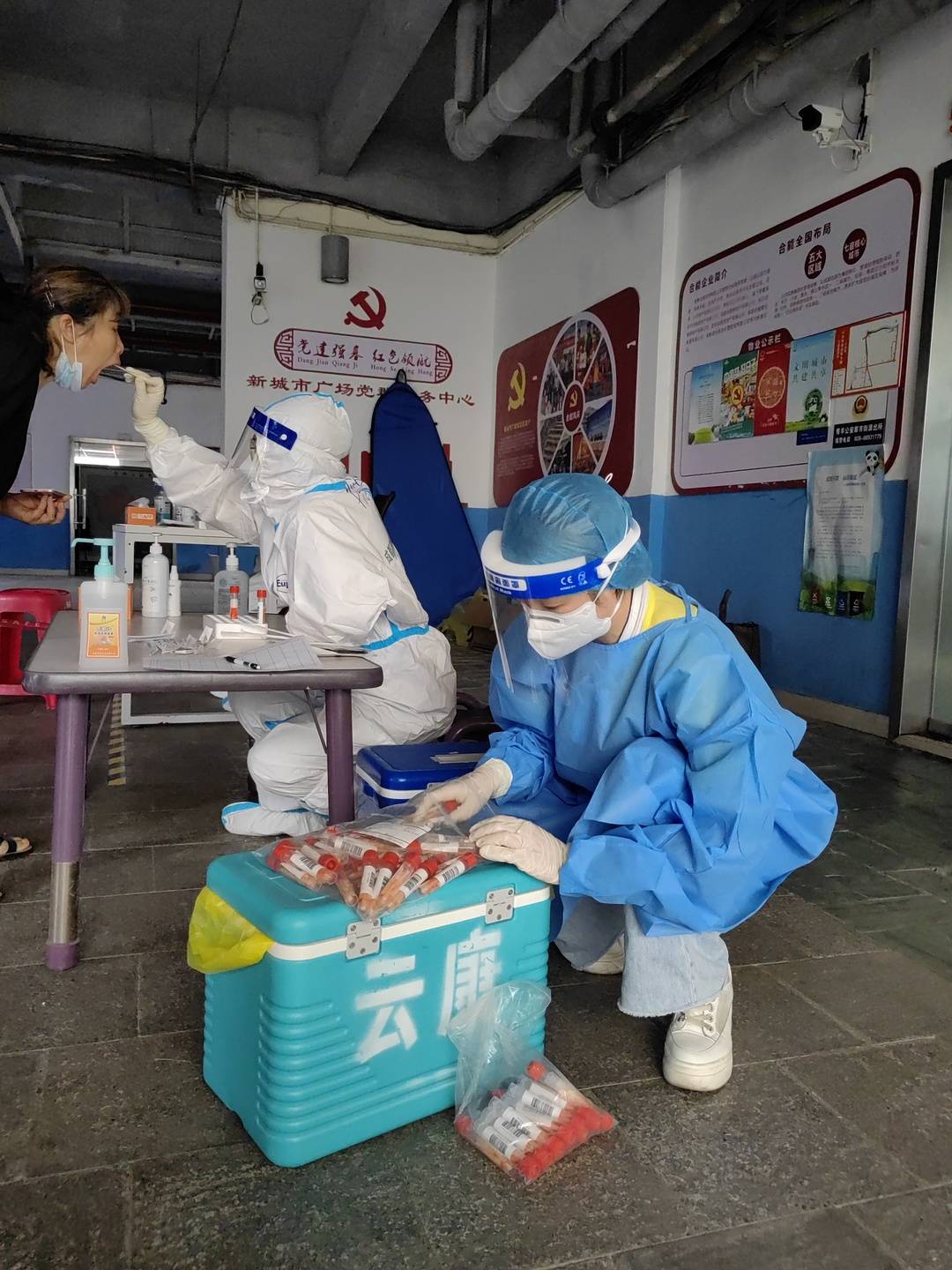 “只要换上防护服,提上转运箱,立即就紧张了起来,速度必须要快。早一分收取和送达,就能早出结果,市民们也才能早安心。”蒲丹表示,很多时候因为道路施工的原因,车子不能直接到达采样点,下车后要提着箱子小跑着去找。穿着防护服,提着箱子,腾不开手看手机地图,只能一边小跑一边问社区工作人员。有些采样点地势较高,道路崎岖不平也是常事。蒲丹说到,每天脱下防护服,衣服都被汗水浸湿,加上每次收送采样管双手都会多次消杀,取下手套后,双手也被泡得皱皱巴巴。