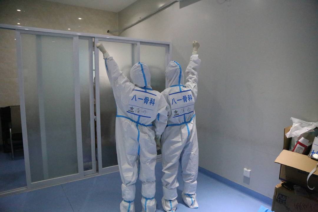 在当志愿者的过程中,蒲丹为了减少物资的浪费几乎不喝水。因为喝水就会去卫生间,去一趟卫生间就要换一套新的防护服,这样不但耗费时间,也是对物资的浪费。除了不喝水之外,中午吃饭也非常困难,由于没有堂食、不能聚众,她只能端着盒饭找个角落蹲着吃。