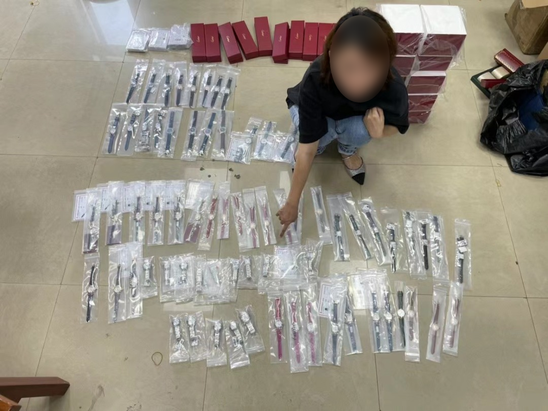 长兴县局侦查中心经前期缜密侦查,在9月5日会同煤山、虹星桥派出所,将犯罪嫌疑人黎某、武某、邓某、卢某、乔某5人于广东省东莞市抓获。经审查查明,5人在明知销售的卡地亚等手表系假冒注册商标的商品的情况下,利用微信在网上进行销售货品,涉案价值达300余万元。警方现场捣毁工作室1个,扣押卡地亚等假冒注册商标名表92块。