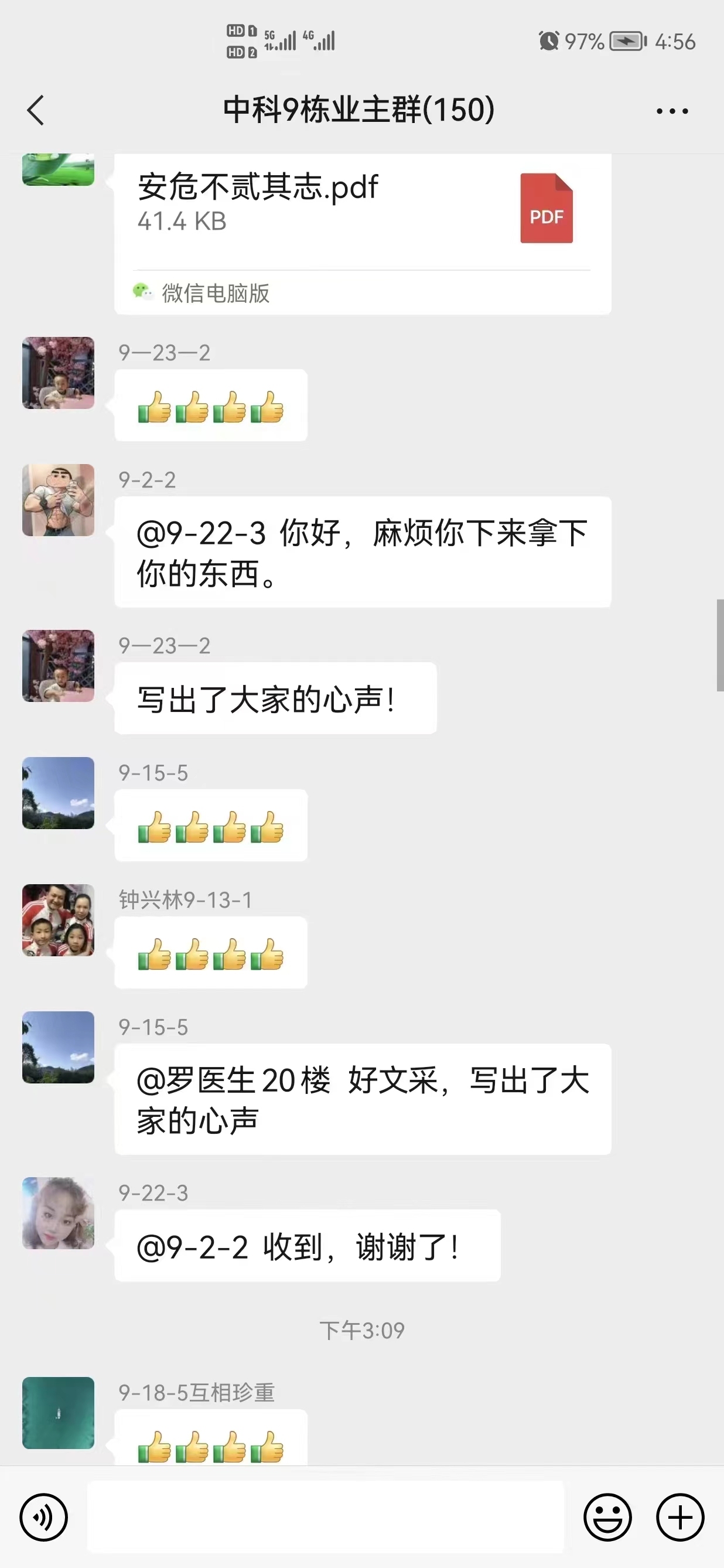 9月12日,贵定县中科恒大城9栋业主微信群里,一封感谢信引爆业主群,也得到了左邻右舍的积极点赞。
