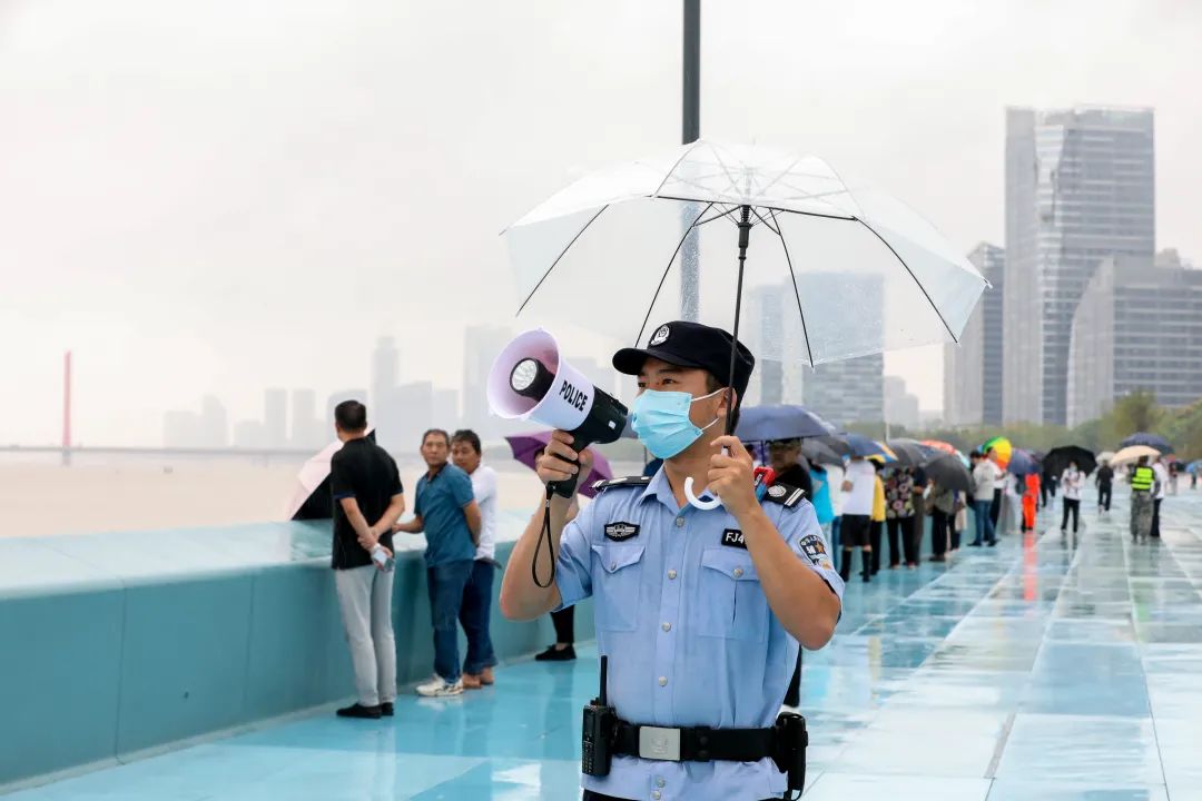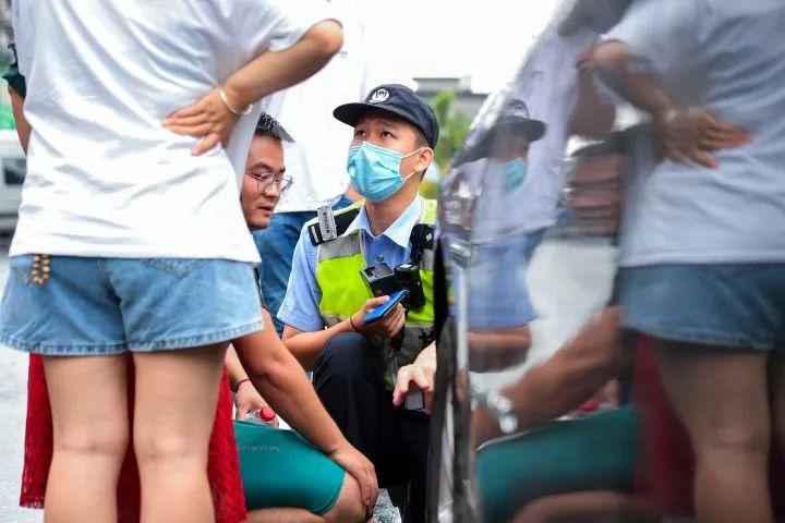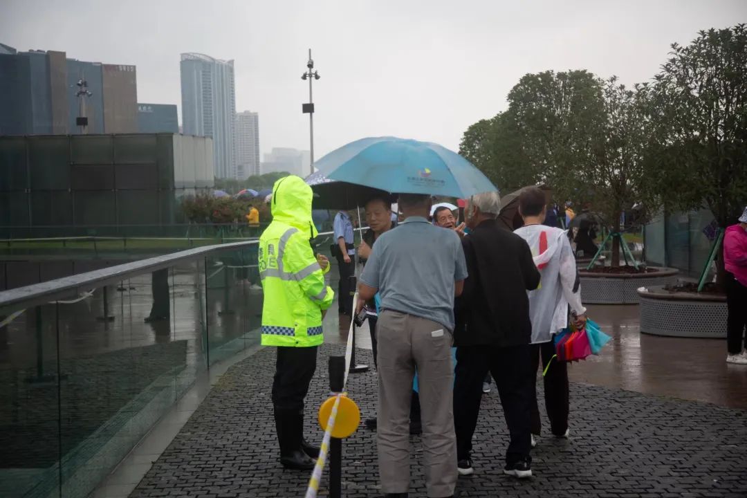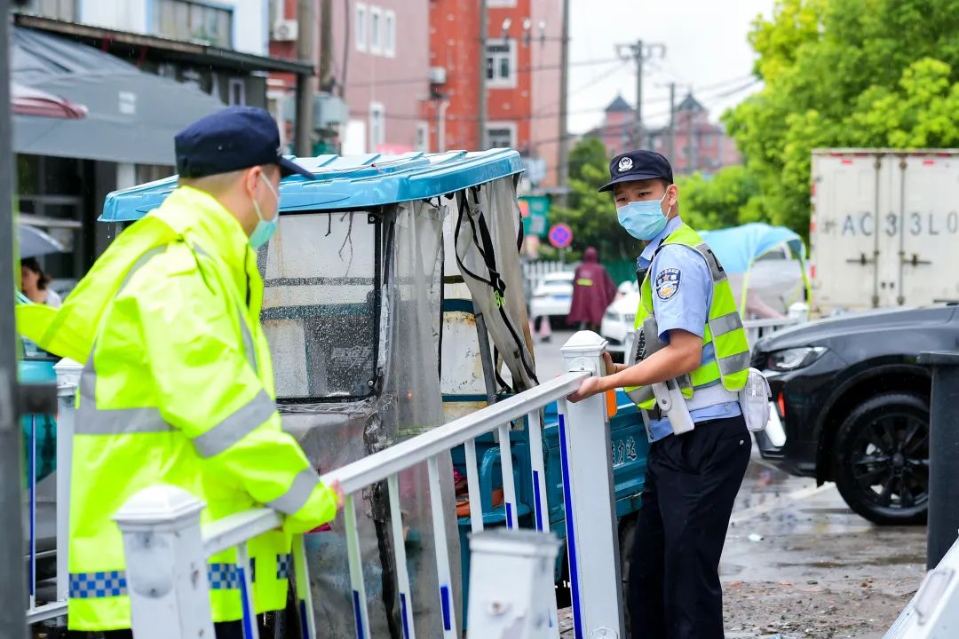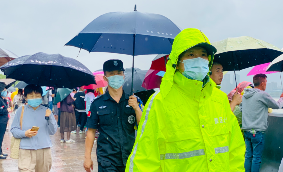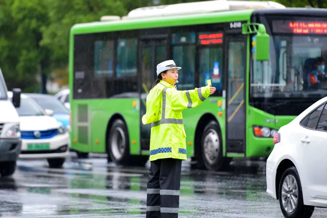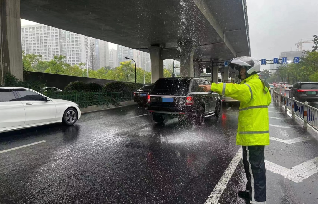 冒着大雨在六和塔和九溪两个卡口疏导交通