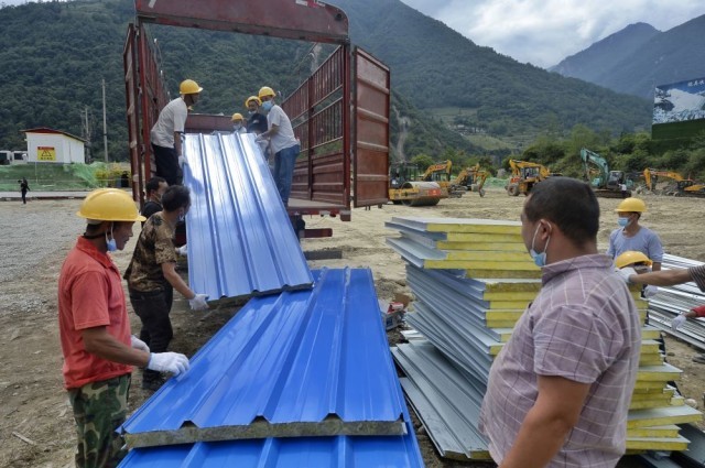 湛明秋介绍,这处安置点是泸定县磨西镇地震灾区启动建设的安置点小区之一,占地9000平方米,将建设170间各式板房,能为约300名群众提供过渡性住房。“我们使用了防火等级A级的75毫米岩棉板,除了建设居住用房之外,还将建设公共卫生间、24小时供应热水的公共浴室、洗衣房、厨房、超市、医疗站等,整个安置点就是一个功能完备的小型社区。”