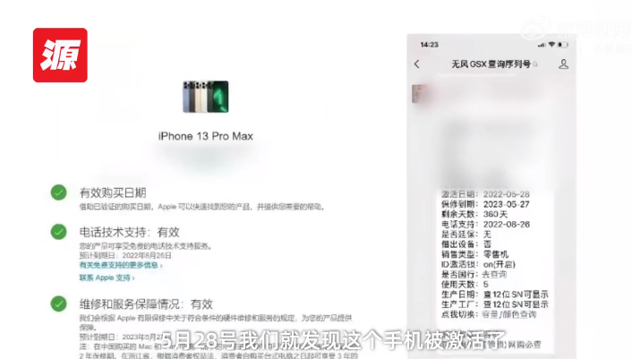 夏女士表示,她在查询序列号,发现此iPhone在5月28日被激活,怀疑手机被偷了。她还表示,下单时未注意到保价金额,不接受1000元赔偿。