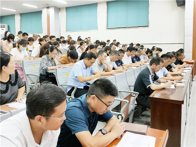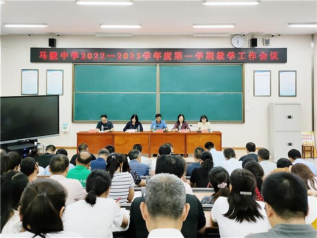 为进一步促进集体备课落实落细,改进课堂教学生态,加强新学期的教学科研工作,促进教学高质量发展,9月7日下午,马陵中学在阶梯教室1召开了2022-2023学年度第一学期全校教学工作会议。课程中心、教师发展中心、各年级处负责人,学科中心副主任,备课组长,核心备课组成员参加会议,校长宋志平、校党委书记张美华和分管教学副校长王敬出席会议。会议由王敬主持。