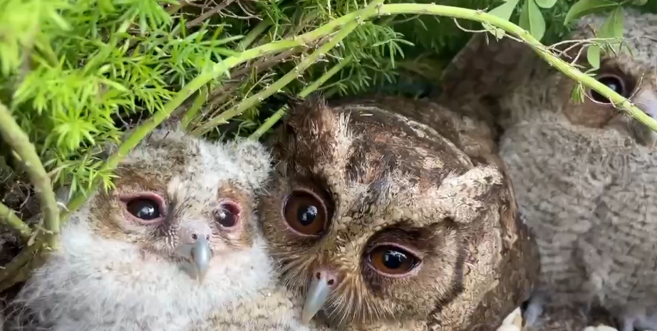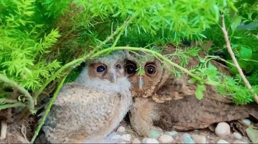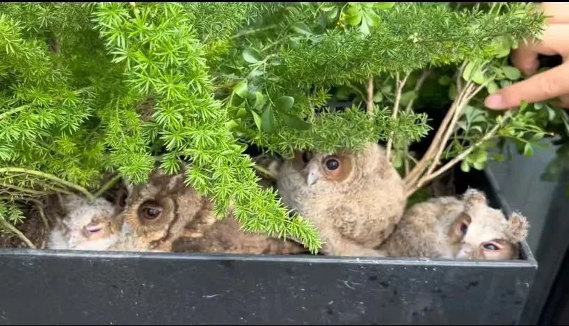 经专业人士初步鉴定,这四只小萌物学名领角鸮(xiao “削”同音),属于鸮形目动物,是猫头鹰的一种,属于国家二级重点保护野生动物,该物种的出现,是生态环境趋好的重要标志。