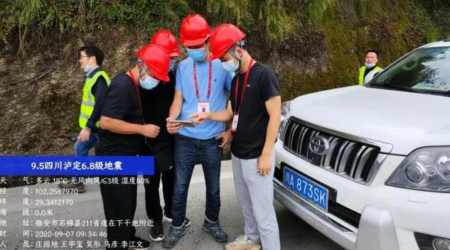 地震发生后,正在乐山进行野外工作的吴彤、马彦、王宇玺、庄园旭、李江文等五位同志意识到此次地震的严重性,他们随即暂停正在野外架设台站的工作并向中心领导班子请示立即赶赴泸定参加地震应急工作。中心领导班子考虑到他们在蓉外不受成都疫情防控的影响,随即同意他们第一时间奔赴现场。中心5位同志他们一路马不停蹄,不考虑近期出差的劳累,顾不上余震频发的危险,冒着生命危险深入震区,以最快速度在震后满目疮痍的山路中穿行,力争能够尽早进入灾区开展抗震救灾工作。