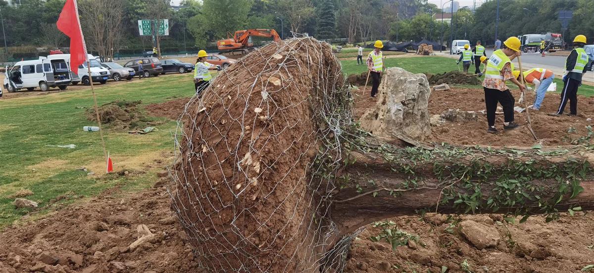 这是宜昌首次采用此种土球打包方式,铁丝网包装土球既美观又结实,采取的都是可以降解的材料,更加环保便捷,相信将会逐步取代布条和草绳包装,成为树木移植包装的一种新趋势。