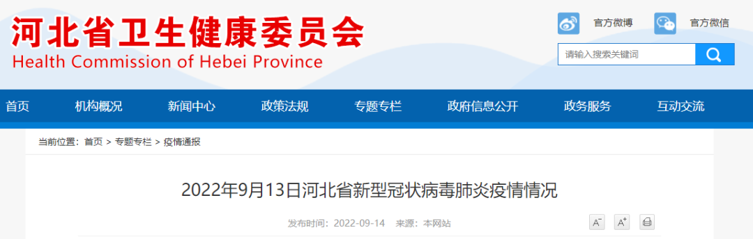2022年9月13日0—24时,河北省无新增新型冠状病毒肺炎确诊病例;新增无症状感染者16例,其中石家庄市12例(裕华区),承德市1例(双滦区,在集中隔离点筛查发现),廊坊市1例(三河市,为外省协查密接人员,在集中隔离点筛查发现),保定市2例(莲池区1例、清苑区1例,为外省来冀返冀人员)。治愈出院2例,无症状感染者解除医学观察34例。