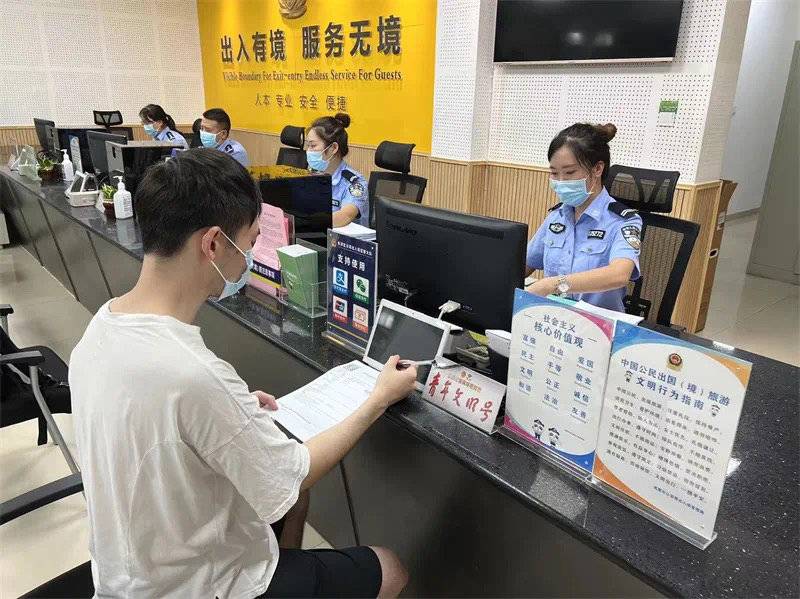 9月7日下午,在新津工作的 “蓉漂”张先生拨通了新津出入境管理大队服务电话。首问责任民警在详细了解其具体情况后,准确给出了办证建议。9月8日,张先生来到出入境接待大厅,经过亮码、测温、检查24小时核酸阴性证明后,在工作人员的指引下,很快完成了信息采集、材料递交、业务受理等申请流程。