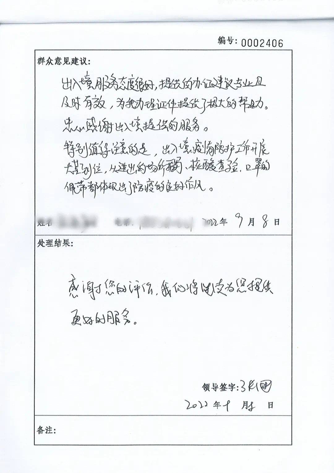 没有华丽的辞藻,本是征求意见建议的留言纸上,却充满了感谢之情。这篇留言出蓉漂张先生之手,留言中他对成都新津公安热情细致的服务,给予了高度评价。
