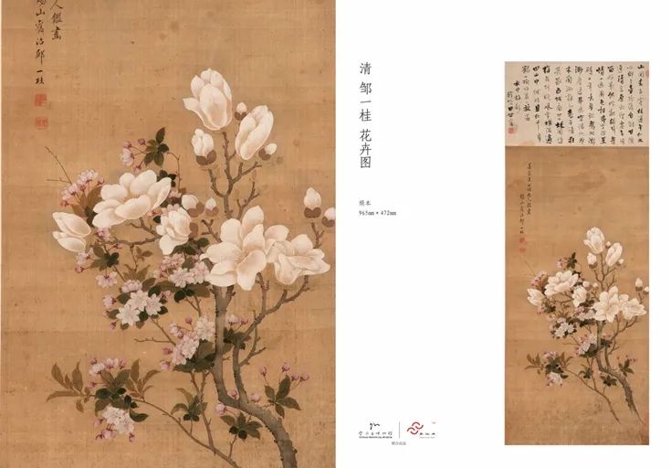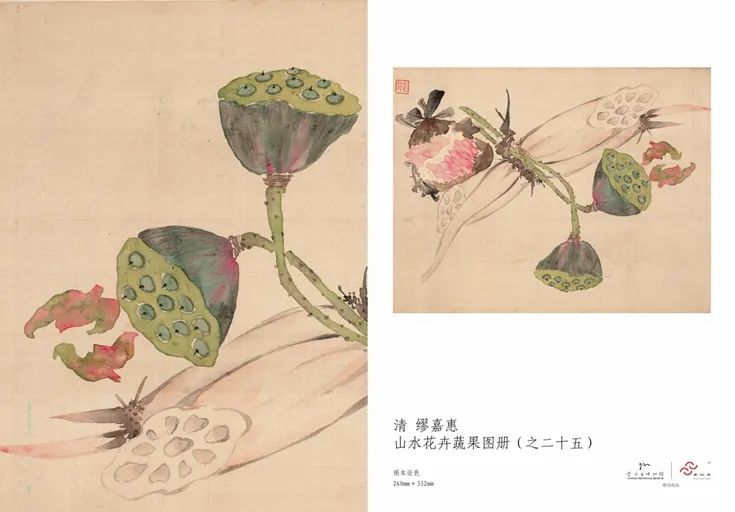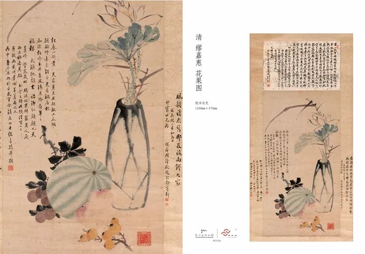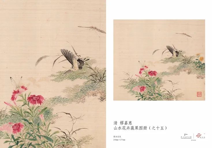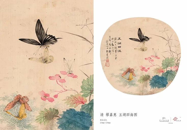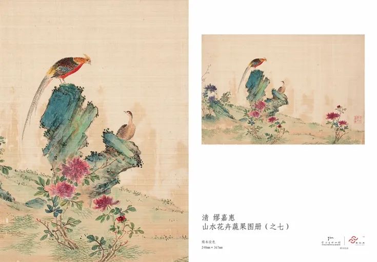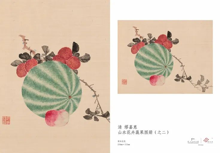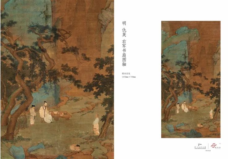 它们分别出自吕纪、仇英、郎世宁、缪嘉慧、王綍、任仁发、黄君璧等七位大家之手,题材多样,既有书画作品中常见的“右军书扇图”“松鹤图”等,亦有表现生活意趣的花鸟、瓜果等。