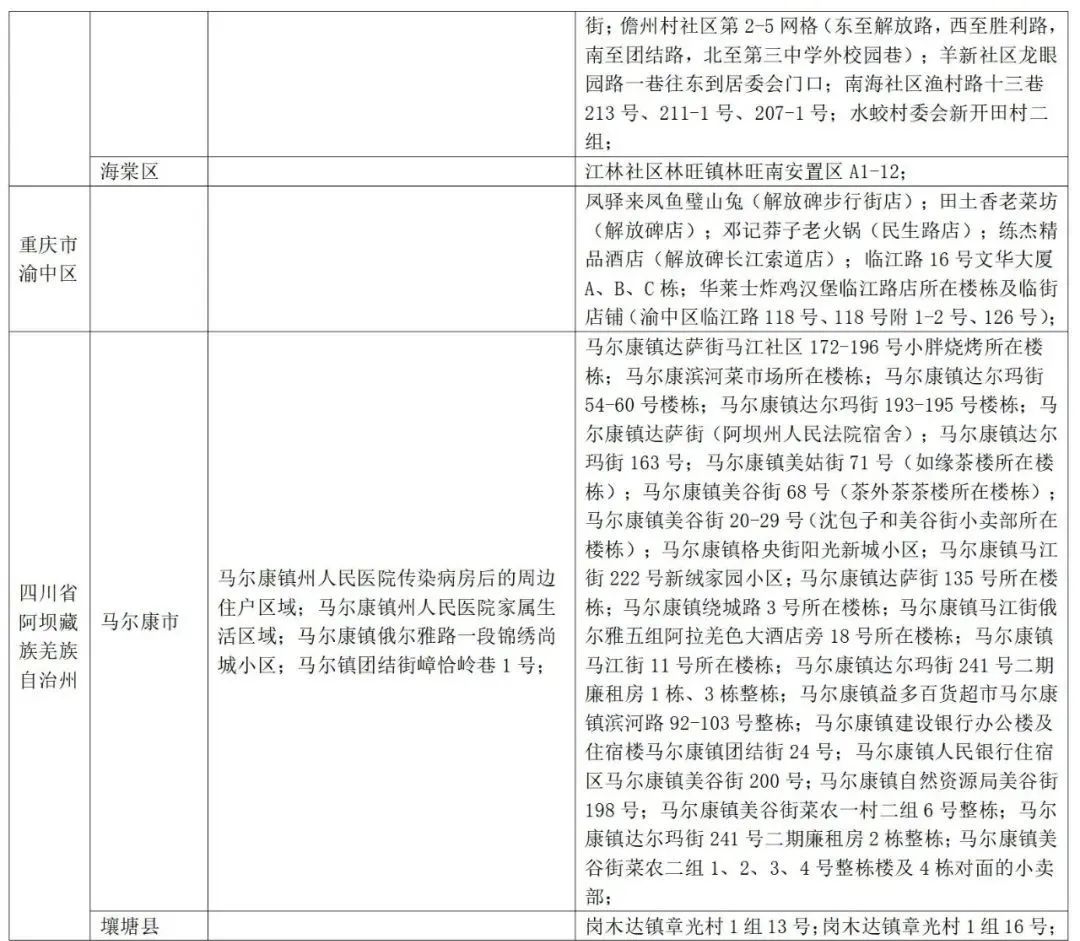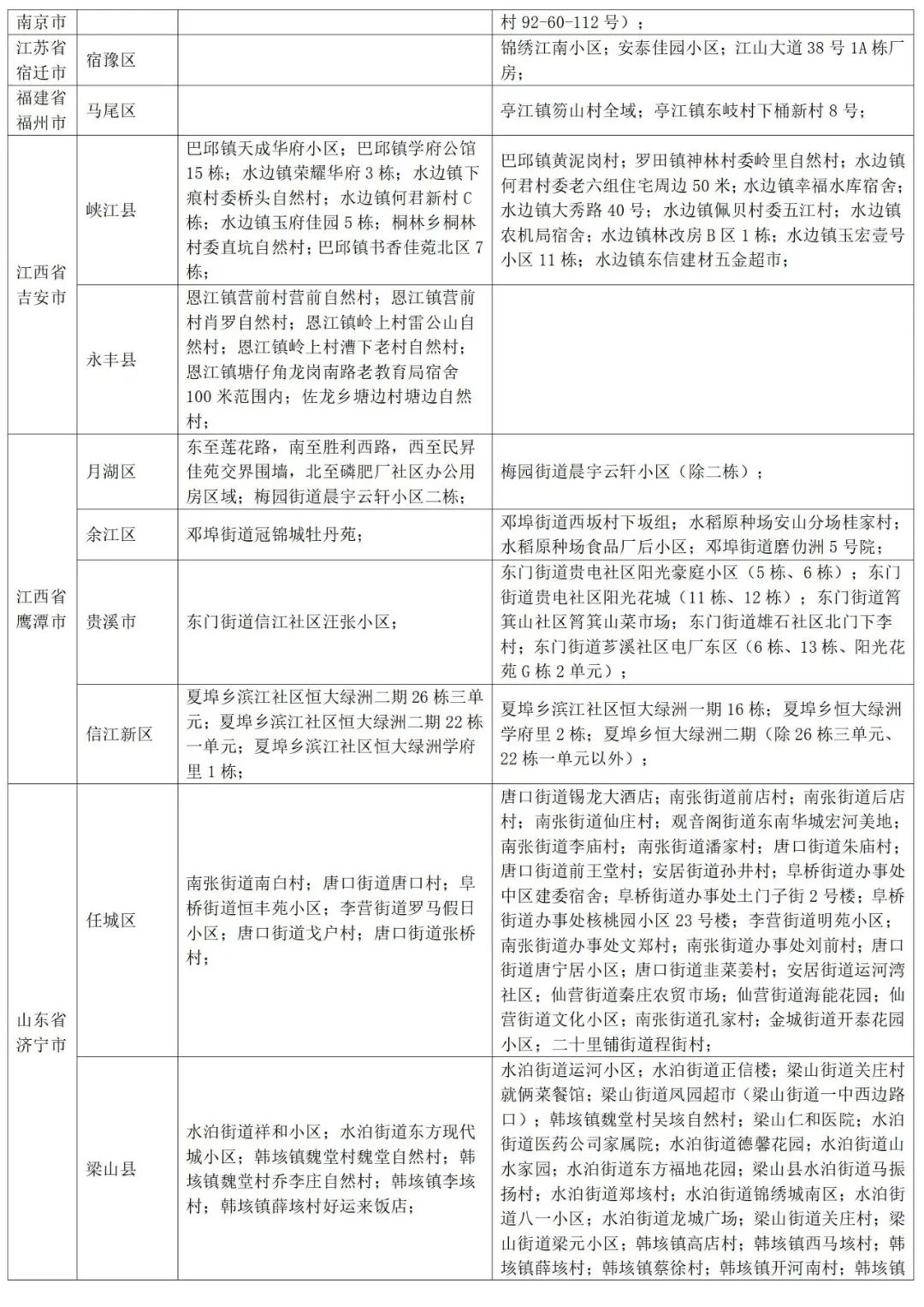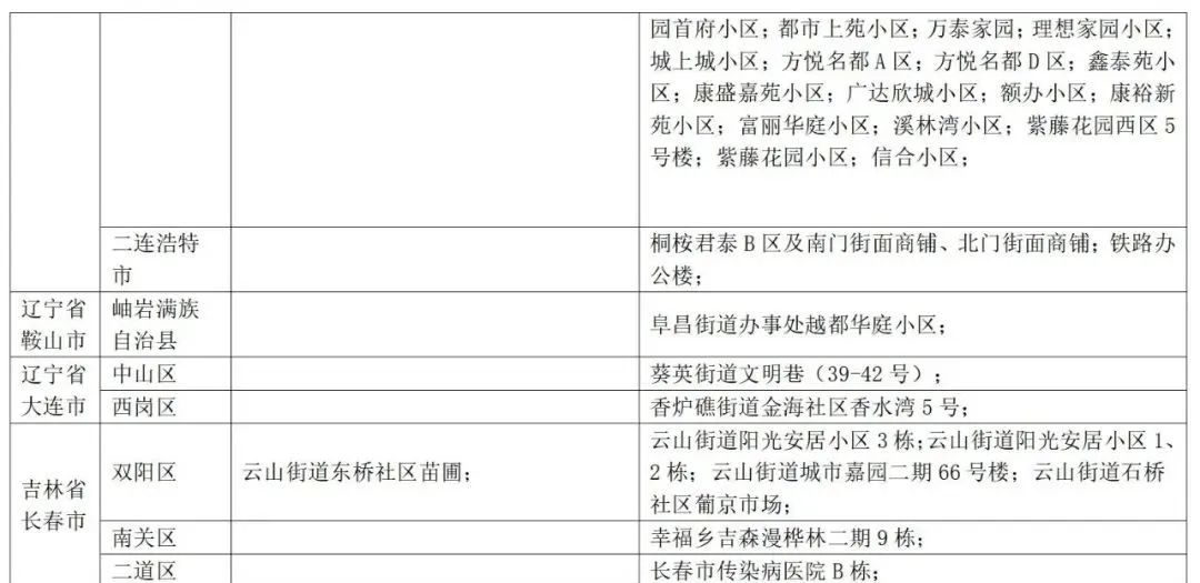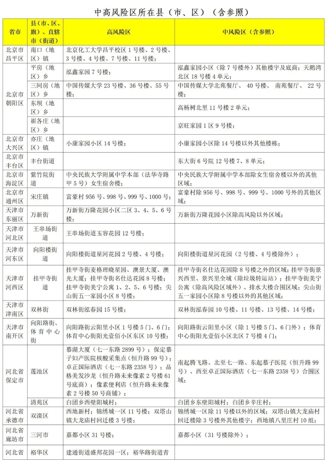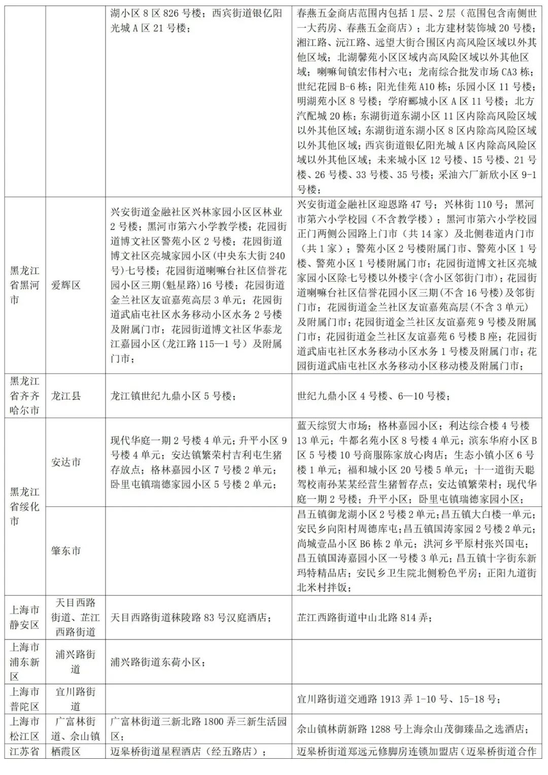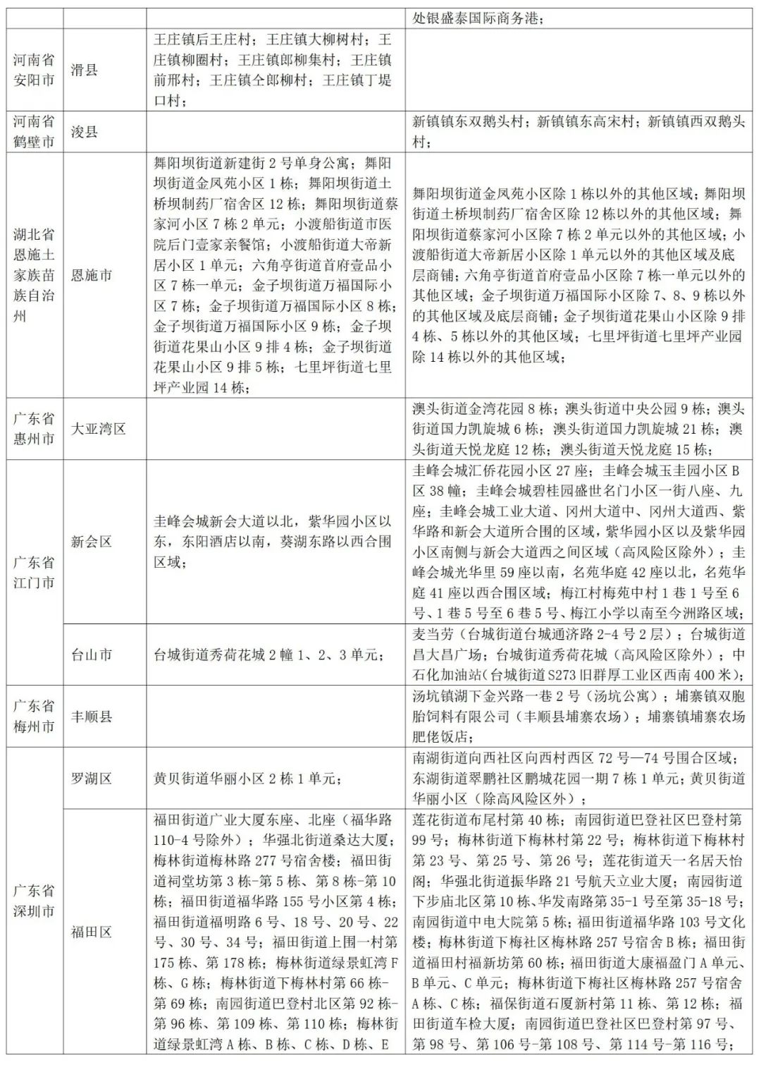 备注:已公布的中高风险区所在县(市、区),不再逐一列举轨迹涉及的具体地点。