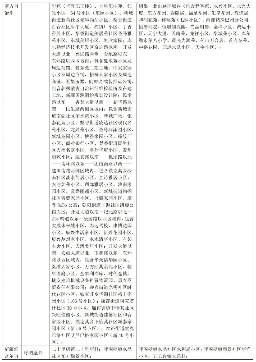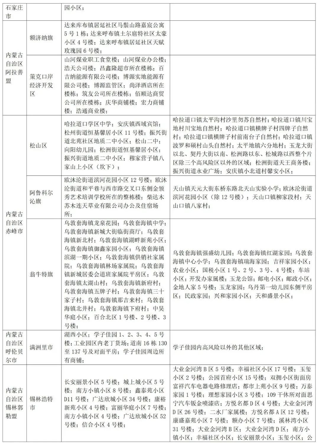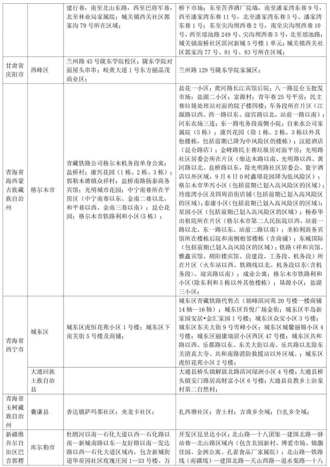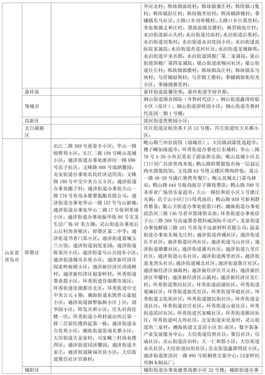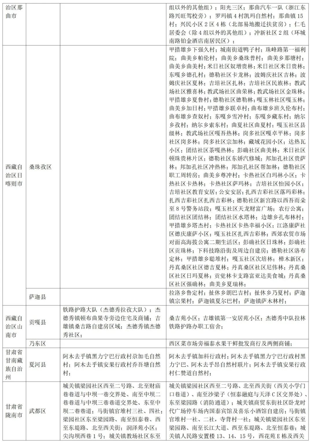 备注:已公布的中高风险区所在县(市、区),不再逐一列举轨迹涉及的具体地点。