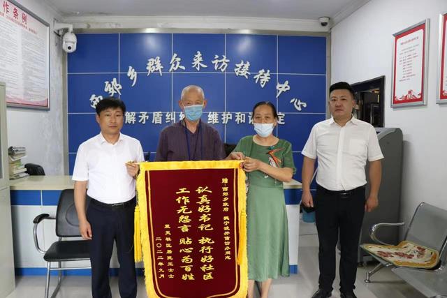 “多亏了金耀街道协调帮忙,两年的闹心事儿才得以圆满解决,今天特意过来表示感谢。”9月13日下午,开封市城乡一体化示范区金耀街道蓝天社区居民王女士和家属,将一面印有“认真好书记 执行好社区 工作无怨言 贴心为百姓”的锦旗送到街道党工委书记魏宁波、党政办主任王坤鹏的手中,对街道党员干部一心为民、尽职尽责的工作和作风表示由衷感谢。