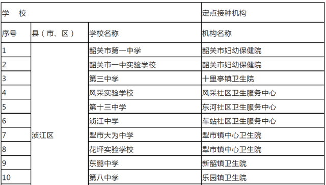 附:韶关市2022年适龄女生HPV疫苗定点接种单位一览表