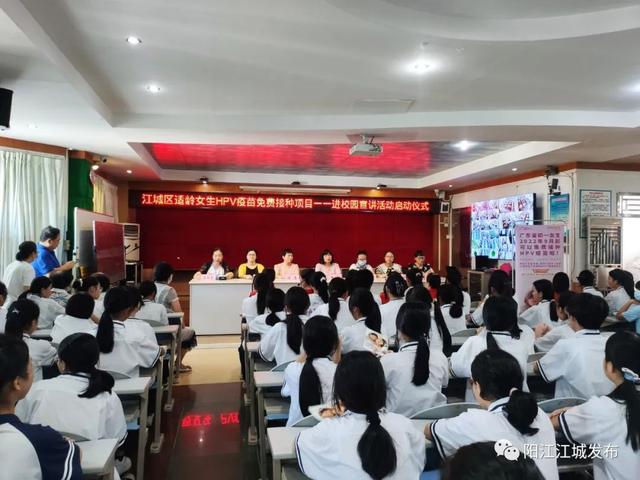 9月13日,阳江江城区适龄女生HPV疫苗免费接种项目——进校园宣讲活动启动仪式走进阳江市田家炳学校。