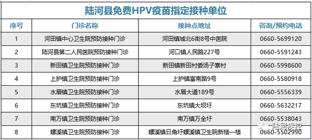 附表1:陆河县免费HPV疫苗指定接种单位