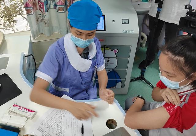 当天,肇庆市接种现场在端州区城西社区卫生服务中心进行,由端州区城西社区卫生服务中心组织的40名来自肇庆市第二中学的初一女生,在家长的陪同下于社区门诊大厅集合等待接种。