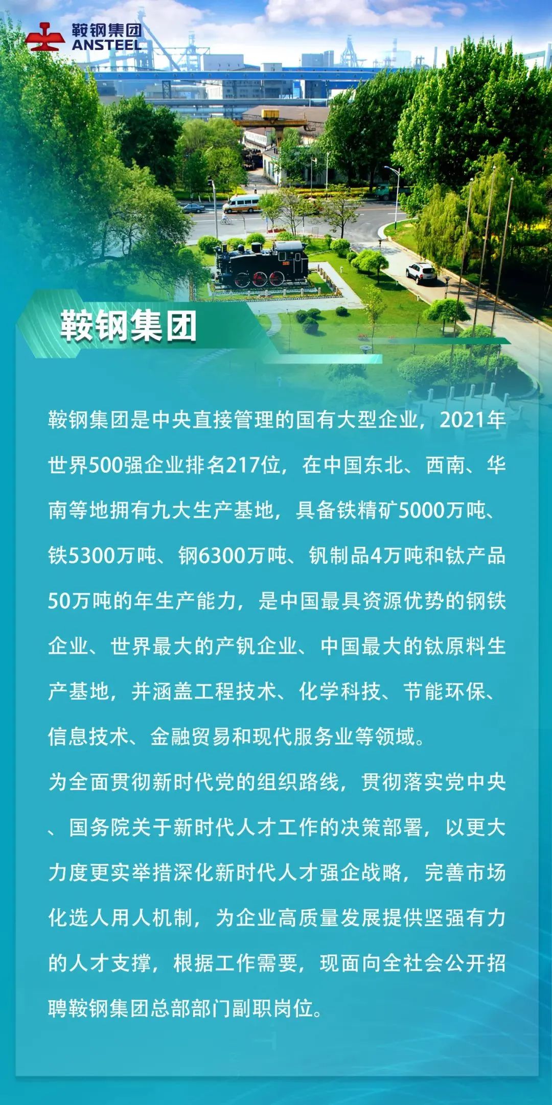 【社招】鞍钢集团总部2名部门副职岗位公开招聘
