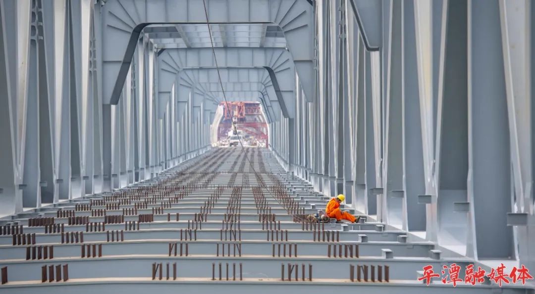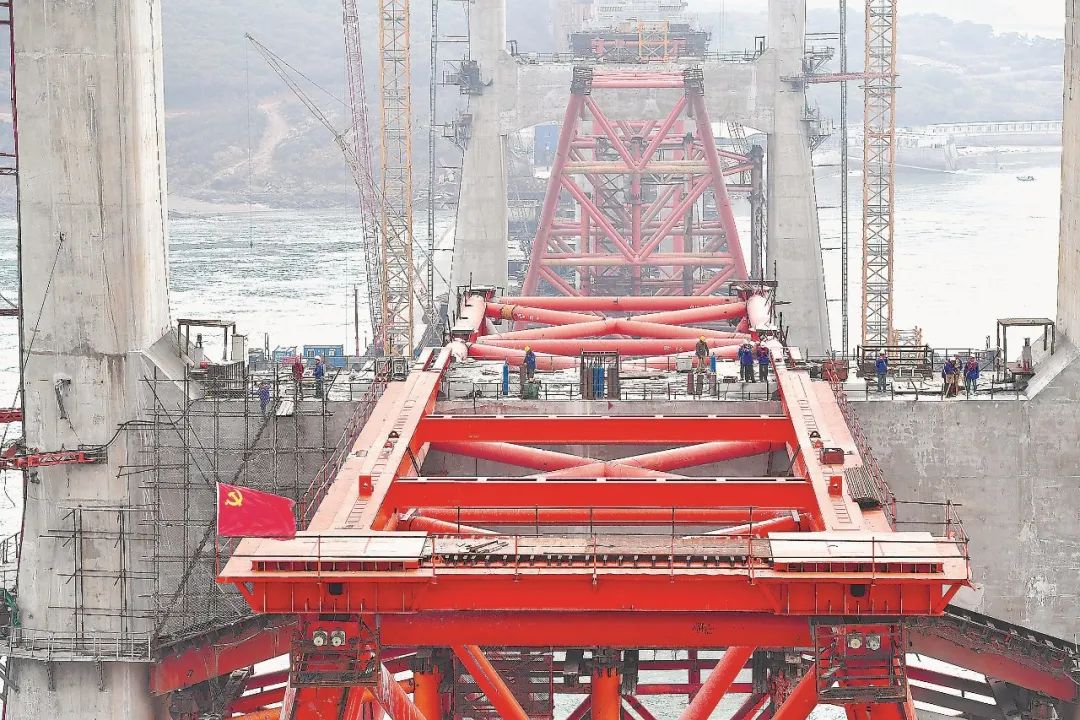 从2017年8月开始,大桥主桥进入钢桁梁架设阶段,混凝土箱梁施工也有序推进。为确保施工质量和工期,建设者实行三班倒作业▲