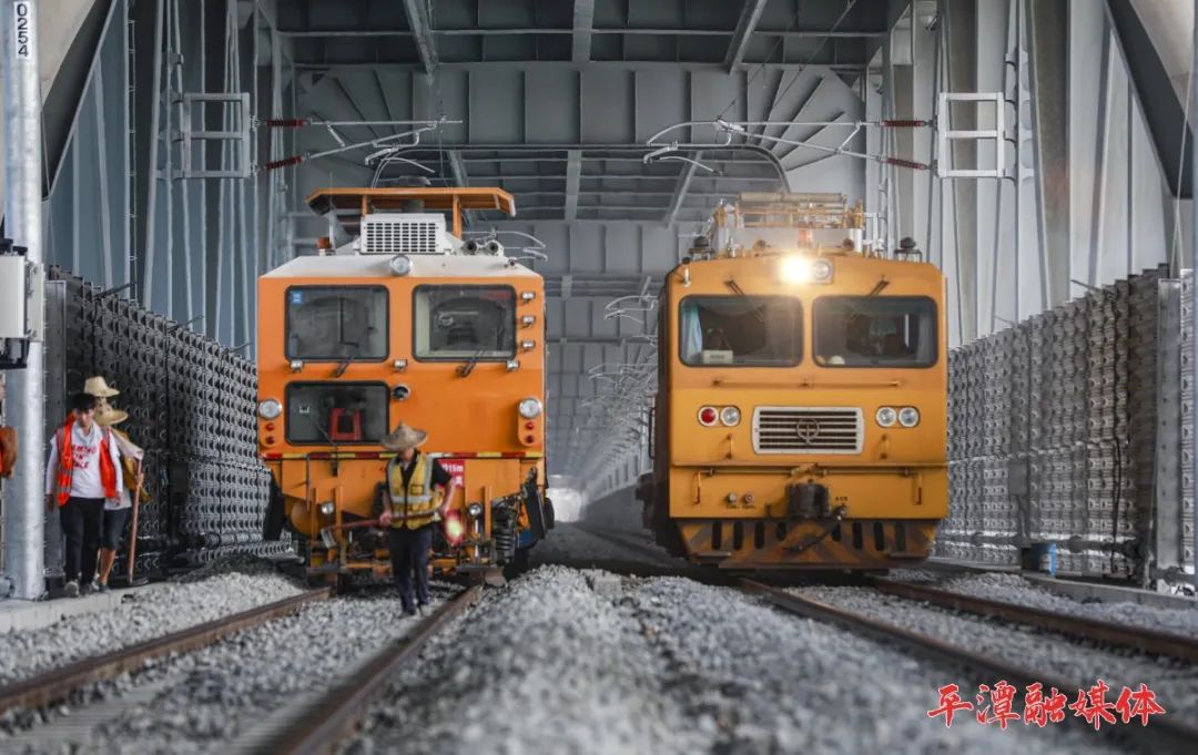 2020年8月25日,两台高精度的大型养路机械车辆轰鸣作响,地面直颤。这是该座大桥启动静态荷载试验后的首轮线路精调作业 ▲