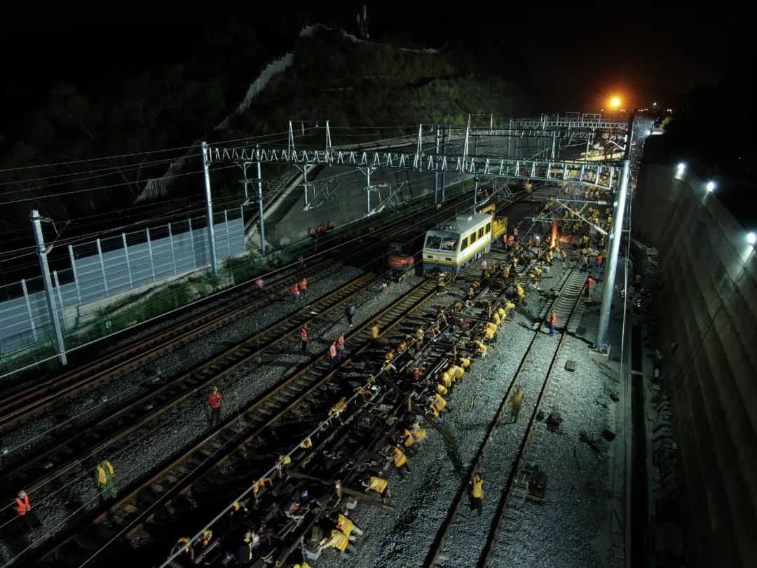 2020年8月26日5时05分,经过工人近5个小时施工,福平铁路引入福州南站最后一组道岔铺设完成,标志着福平铁路全面融入全国高铁网▲