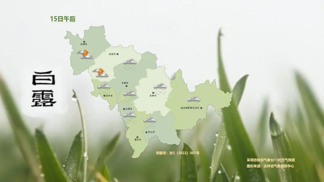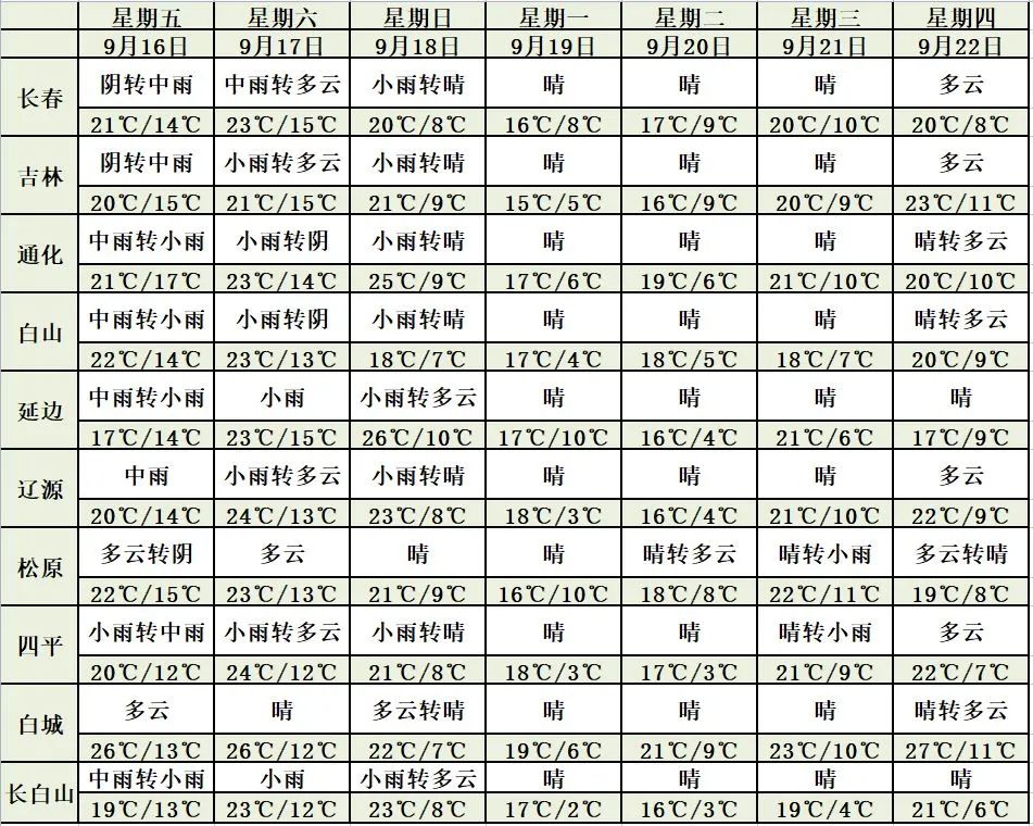 明天夜间到后天白天,全省阴,长春东部和南部、四平东部、辽源、吉林、延边西部有中到大雨,部分地方有暴雨,长春西部和北部、通化北部、延边东部有小到中雨,松原东北部、四平西部、通化南部、白山、长白山保护区有小雨。