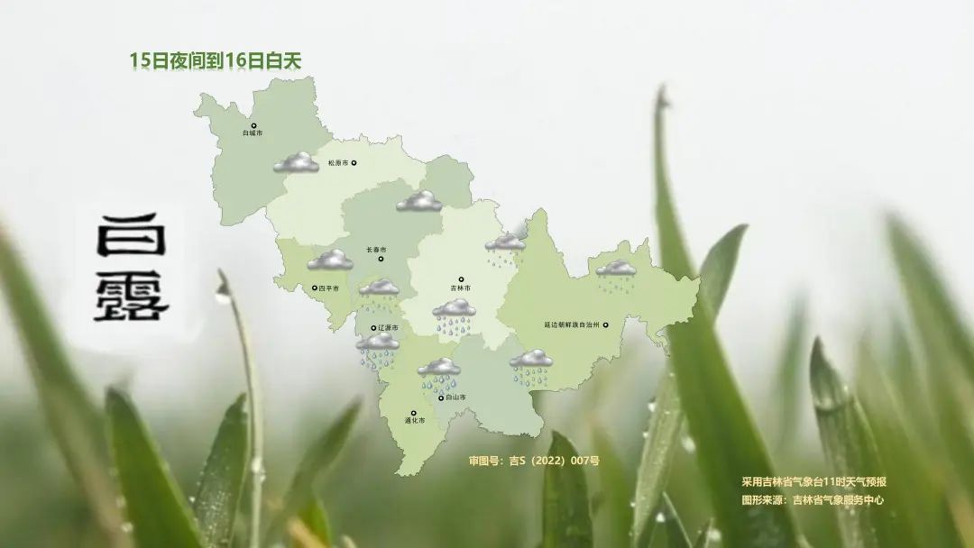 今天夜间到明天白天,全省阴,通化、白山西部有大到暴雨,辽源、吉林南部、白山东部、延边南部、长白山保护区有中到大雨,长春南部、四平东部、吉林北部、延边北部有小雨。