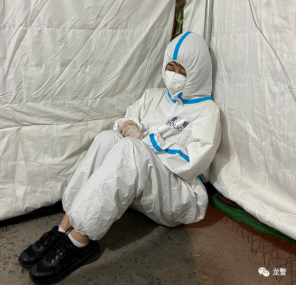 坐在帐篷角落里睡着的是个女民警——会战公安分局社区警务大队的吕紫微,今年27岁,从警3年。
