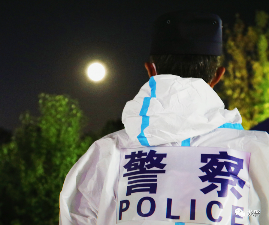 照片中的人,是铁人公安分局指挥中心主任朱利辉。中秋节深夜,他在萨尔图区铁人街道奔腾社区颐和园小区巡逻时,同事在其身后拍了一张他和月亮的合影。