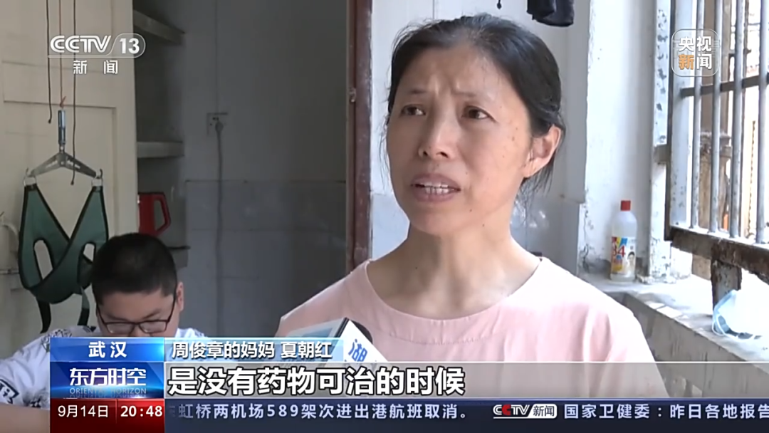 周俊章的母亲 夏朝红:刚开始得知他这个病是没有药物可治的时候,我几乎崩溃了。我说我孩子还年龄这么小,他后来怎么办?最后我们还是决定了振作起来,送孩子上学读书,只有上学读书知识才能改变他的命运。