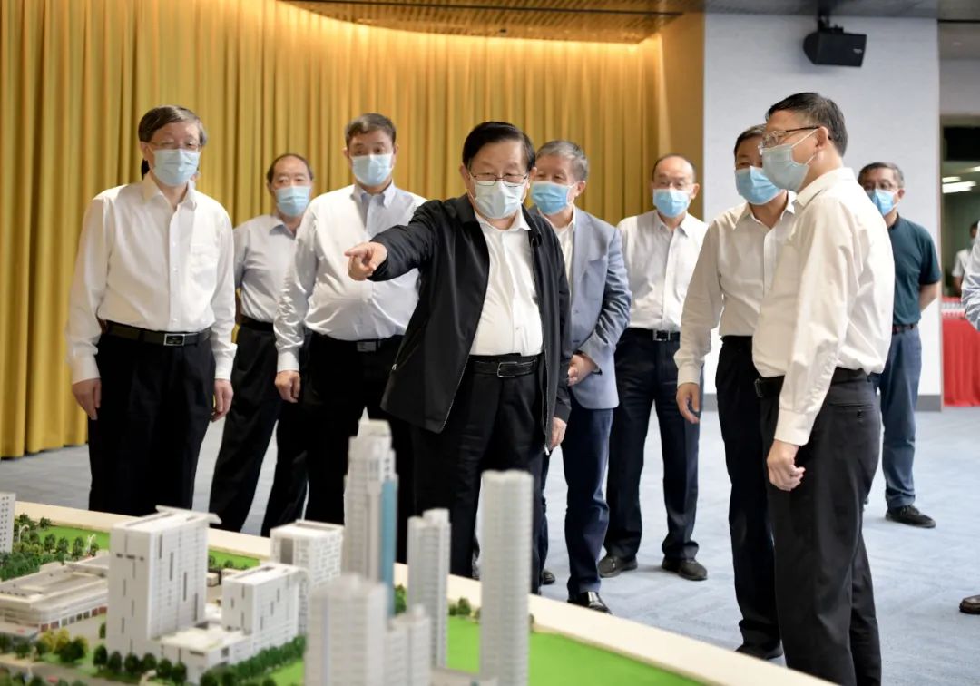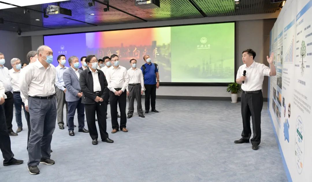 万钢一行首先来到建筑设计研究院,实地参观同济大学科研成果展,听取了副校长童小华所作的关于学校服务国家和上海市重大科技成果、环同济知识经济圈建设、科研成果转化、科技成果分类多元评价等方面情况的汇报,对同济大学坚持“四个面向”,持续提升基础研究实力、加快推进关键核心技术攻关、健全科技成果评价体系的创新探索表示赞赏。
