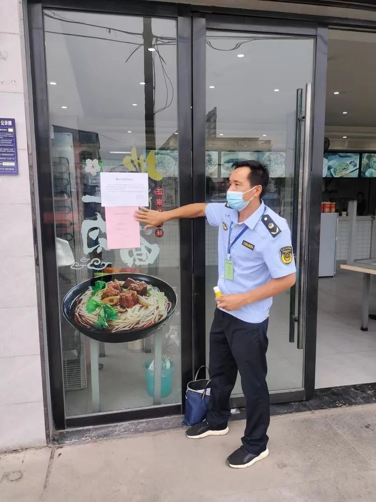 督促餐饮门店落实防控规定,发放严禁堂食“告知书”
