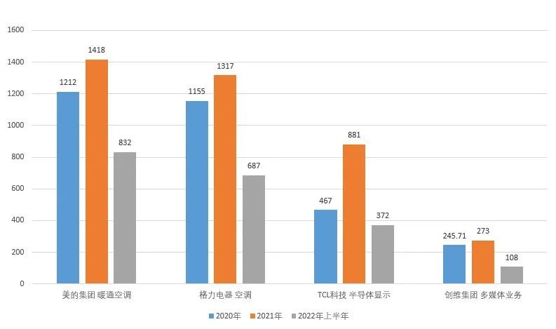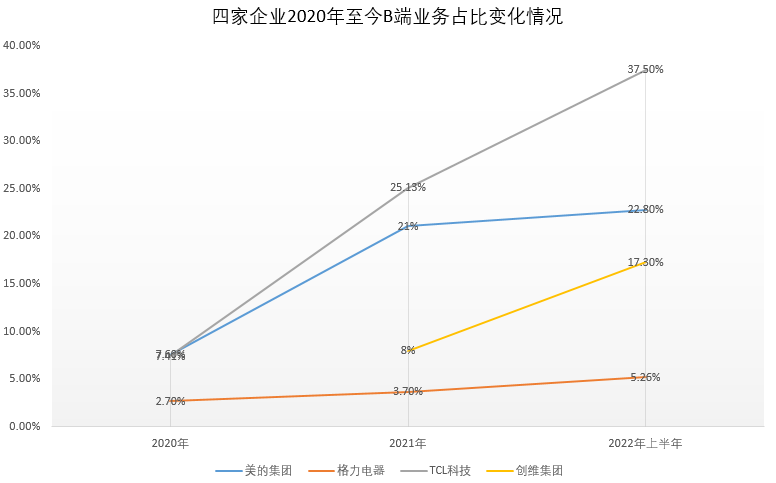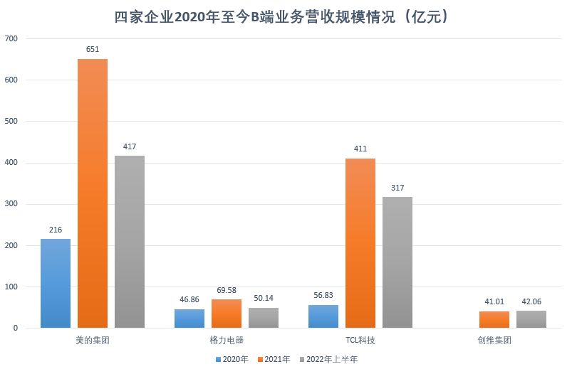 从业绩表现来看,美的集团、TCL科技的B端布局已经“初见曙光”,创维集团、格力电器多元化布局正在“冲出地平线”。