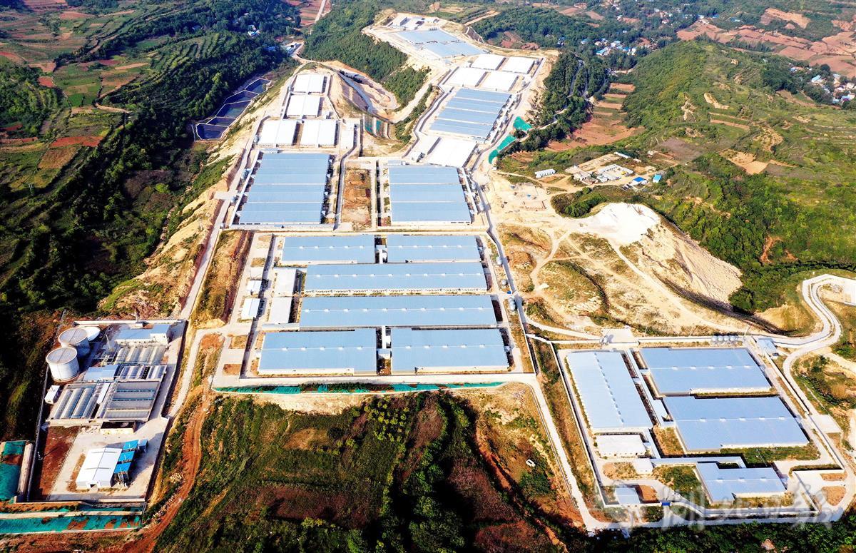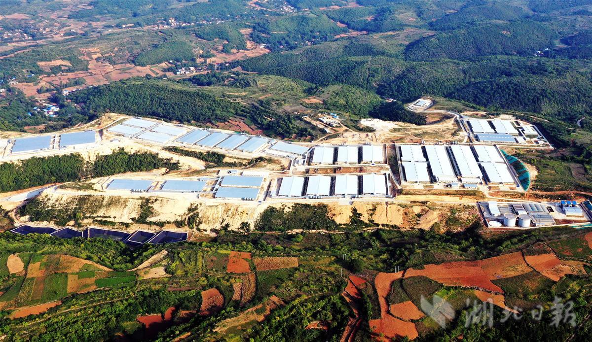 9月11日,十堰市郧阳区梅铺镇李家沟村,鸟瞰新希望集团郧阳基地项目,目前项目一期工程完成建设。项目一期占地约1500亩,建成后,年出栏优质瘦肉型猪50万头,达产后年总产值20亿元人民币,带动500余户农户养殖致富。(视界网 周家山 摄)