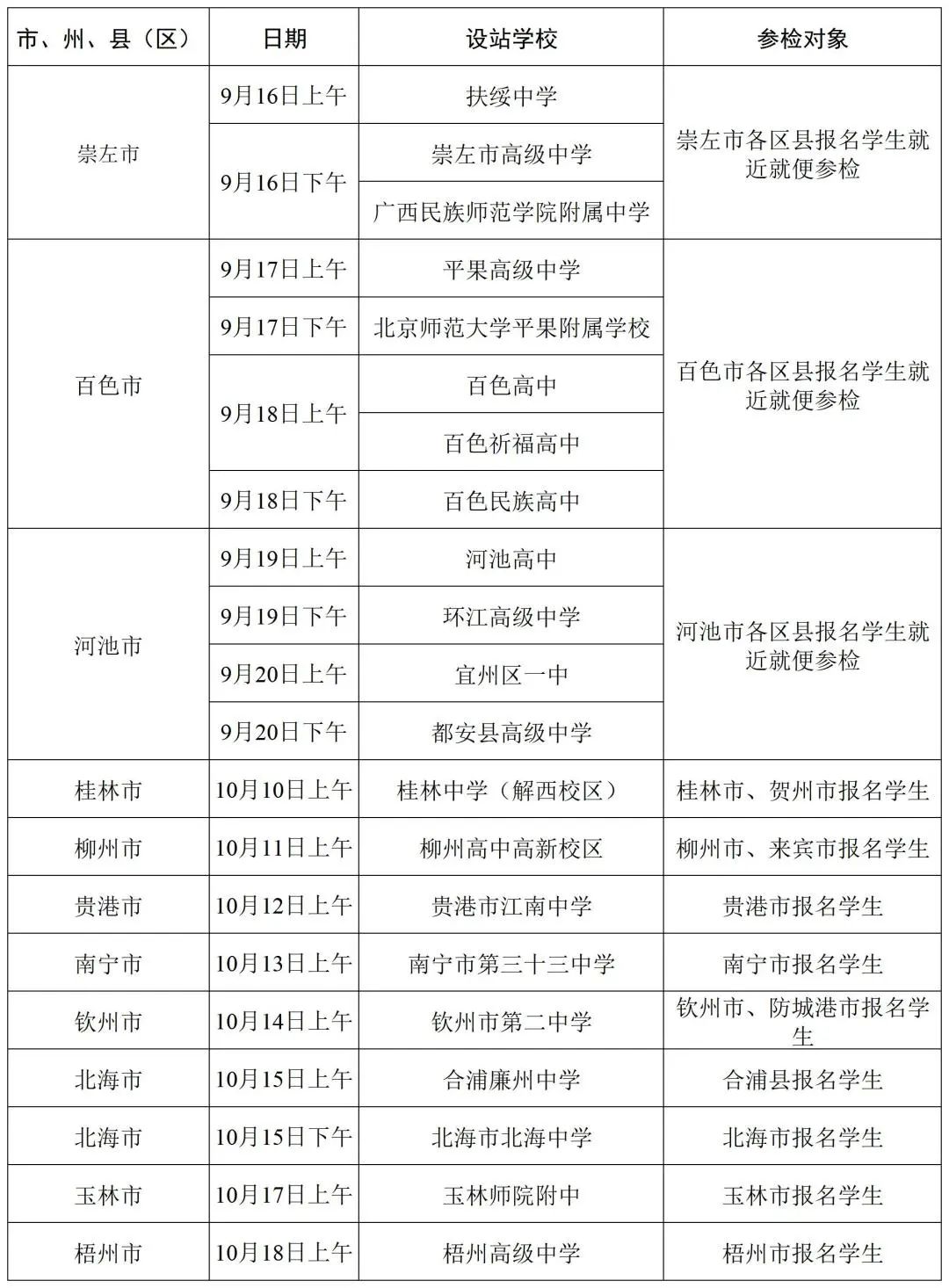 报名学生可由学校统一组织或自行前往设站地点,就近就便参检,随到随检。