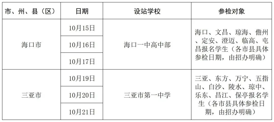 未设站地市、州(区、县)报名学生,根据自身实际情况合理选择时间和设站地点参检。
