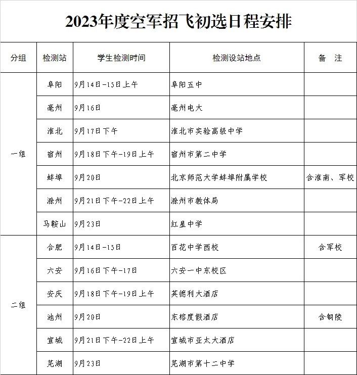 1、初选身体检测主要分三个科室:眼科、耳鼻喉科和外科,学生检测前可正常就餐。初选体检合格的学生现场参加英语、数学笔试(时间为90分钟,携带2B铅笔和橡皮),检测时间为上午8:00-11:30,下午14:00-17:30。